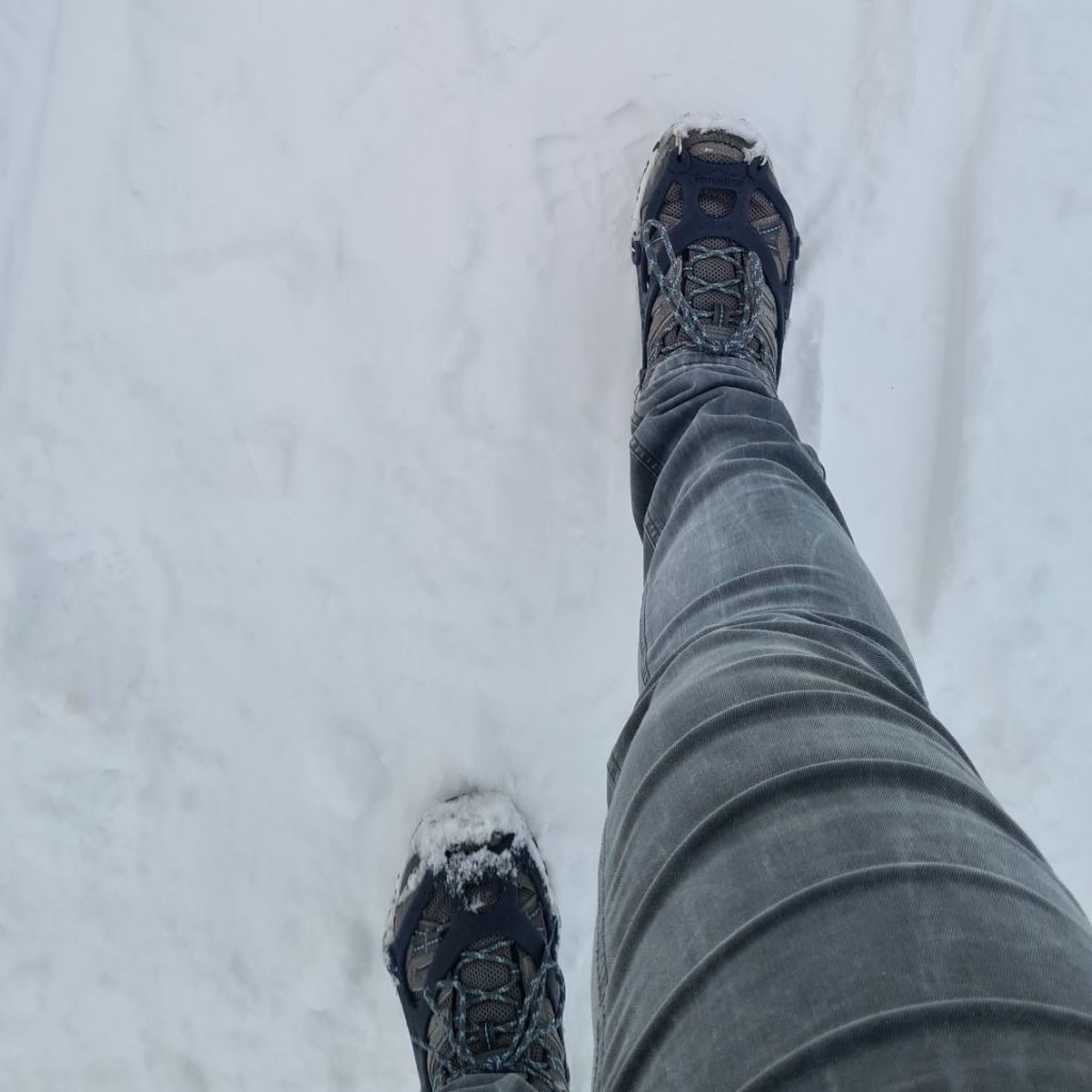 Kurz davor hatte ich noch Online nachgesehen. Dort kosten solche Spikes ungefähr 20 Euro. In diesem Laden vor Ort wollten sie 45 Euro dafür haben. Mein erster Impuls war ziemlich eindeutig: Das ist viel zu teuer. 45 Euro für ein bisschen Metall unter den Schuhen, nur damit man auf Eis nicht ausrutscht? Das fühlte sich in meinem Kopf nach einer dieser typischen „Urlaubs-Fehlentscheidungen“ an, bei denen man sich später fragt, was einen da eigentlich geritten hat. Niemals werde ich diese Dinger zuhause brauchen, Schnee hat es nur super selten und selbst wenn, ist der Räumdienst meistens schneller.